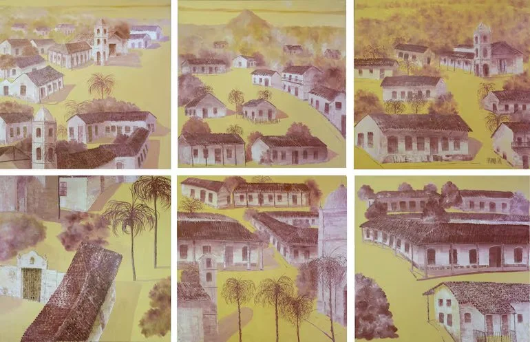 Esperanza Gill: Asunción colonial. Mural en 6 fragmentos. Oleo sobre tela, 1981